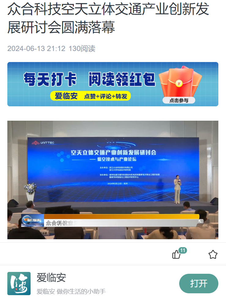 本次研讨会不仅得到了政府的高度重视和业界的广泛关注,还受到中国网、潮新闻、杭州日报客户端、钱江晚报、青山湖科技城官微、临安电视台、临安新闻网、爱临安、南方日报客户端、时报网、同花顺、凤凰网、东方财富网、新浪、搜狐等数家政府及媒体网站、官微、视频号等宣传平台的关注报道。